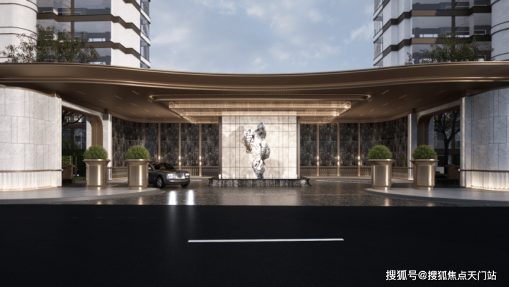 主入口礼序归家轴上,以海上东方+星池雅宴+鎏金茗院三重空间,重现海派隐奢归家之路,步步尊崇。主出入口整体长约30米,进深约23.5米!