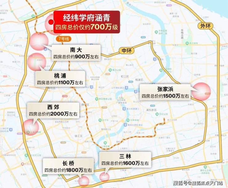 而一旦错过经纬·学府涵青,700万级预算别说买进中环旁4房,就是外环外的3房都难以够到(外环外的梅陇、唐镇单价超过8万,百平3房总价800万级)。