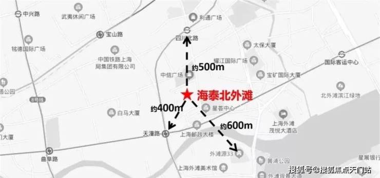 「海泰北外滩」位于虹口区四川北路塘沽路(江西北路以东,塘沽路以南,四川北路以西和规划七浦路以北),距离外滩源仅有600米。