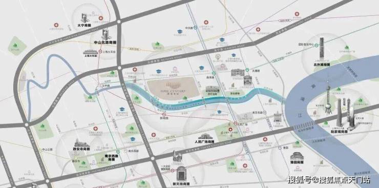 项目的商业部分由美国的SOM建筑设计事务所(曾设计金茂大厦、迪拜塔等世界级知名建筑)操刀,将打造成为苏州河城市活力地标,未来串联起苏河两岸文化与商业节点,成为与南京路、淮海路平行的又一条重要的城市中轴,有利于提升苏河湾的整体形象和气质,展示出苏州河独有的水道魅力。