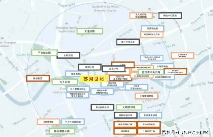 项目地处静安区苏河湾板块,曲阜西路与晋元路交汇处,南接苏州河,东邻爱国主义教育基地四行仓库。项目属于内环内核心区域,与南京东路及人广商圈直线距离约900米,8/12号线曲阜路地铁站距项目直线距离仅约200米,一公里内汇聚城市生活精萃。