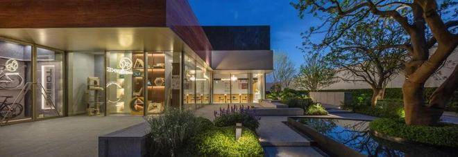 约200平左右的归家大堂做了书吧、落客区、咖啡吧,颇有现代摩登风格的感觉。