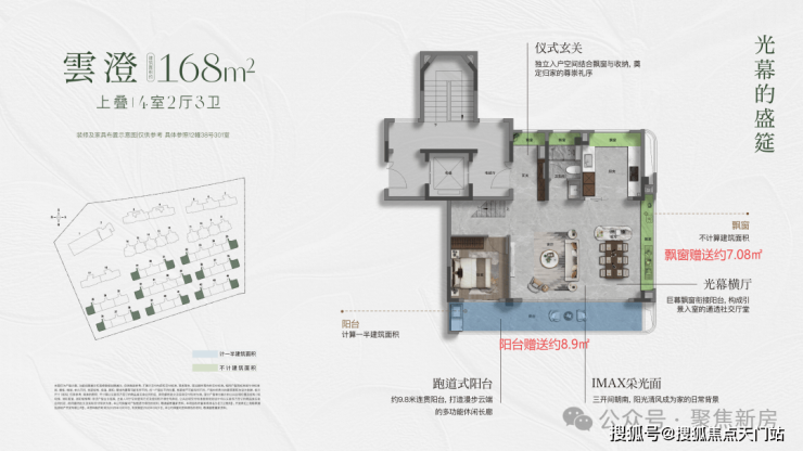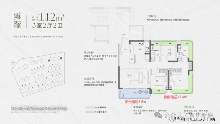 同时休息区全飘窗赠送,主卧更南北双转角飘窗,主卫也有双面飘窗空间,大大提升尺度感。