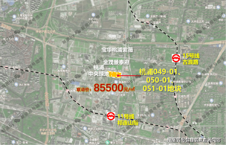 2023年8月,上海二批次土拍,宝华&东苑以总价328800万元成交 普陀区桃浦科技智慧城(W06-1401单元)049-01、050-01、051-01地块,地块出让面积30126.9㎡,容积率2.5,溢价率4.05%,楼板价43655元/㎡,房地联动价85500元/㎡。