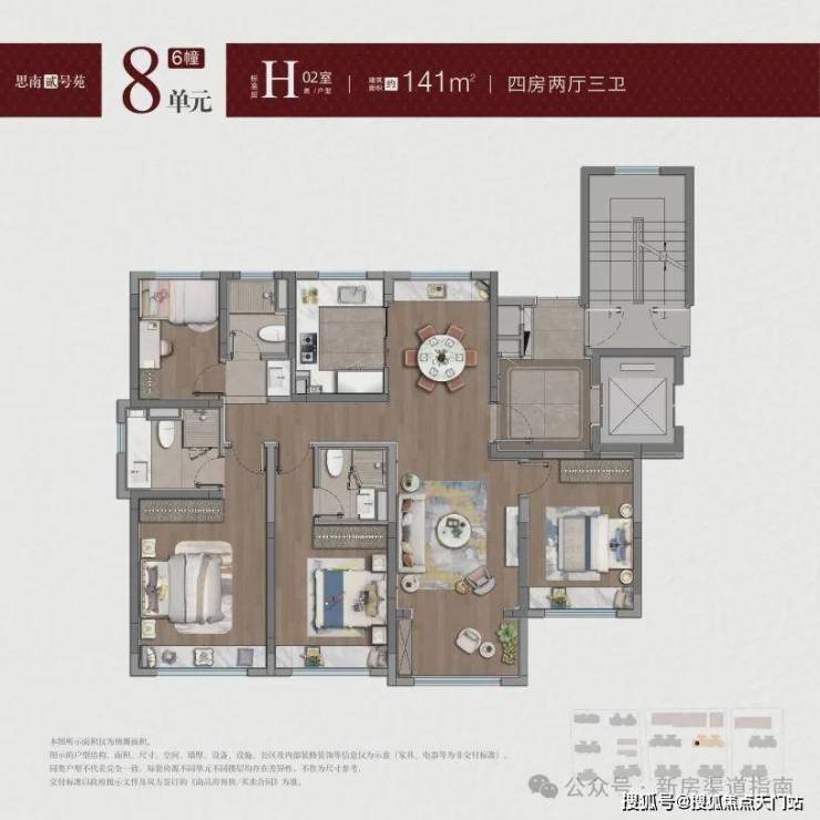 H户型,四房两厅三卫