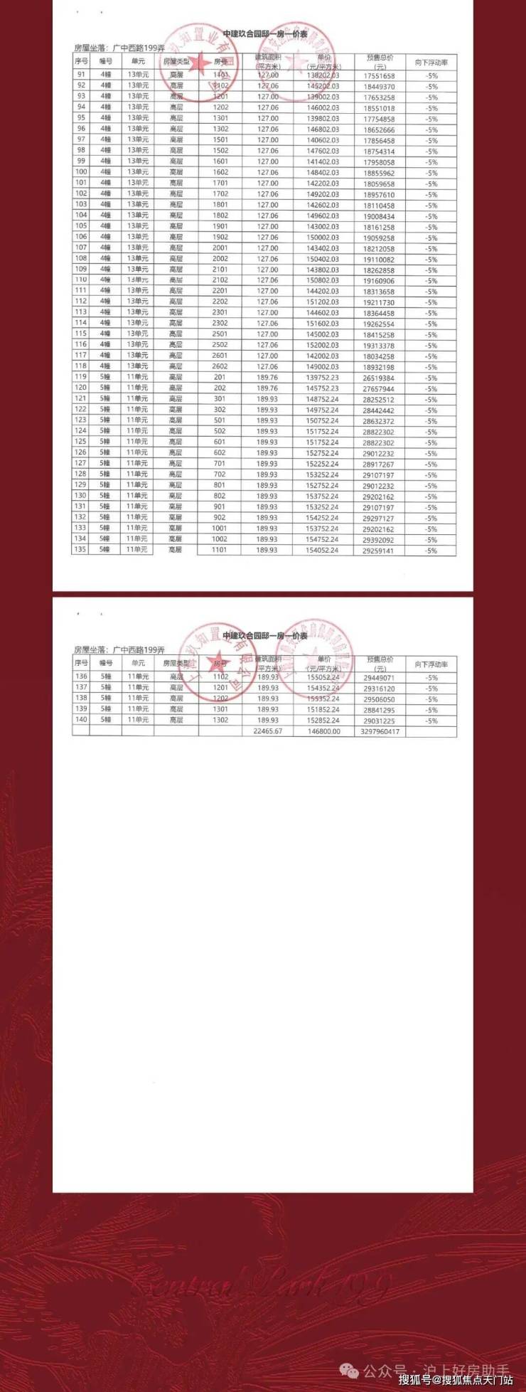 中建玖上琅宸前期一房一价表: