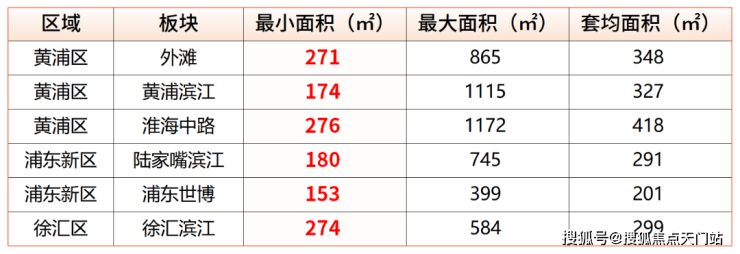我统计了滨江热门板块入市新房的最小面积,普遍200㎡起步,最小最小也要153㎡。