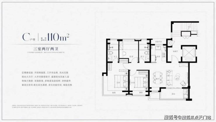 110㎡边套户型深度解析,该户型堪称“小面积段神作”,以四大设计重构改善逻辑: