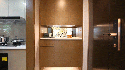 智能门锁,让你告别忘带钥匙的烦恼;入户的玄关处设有收纳柜,给予业主归家仪式感的同时,也方便收纳杂物。
