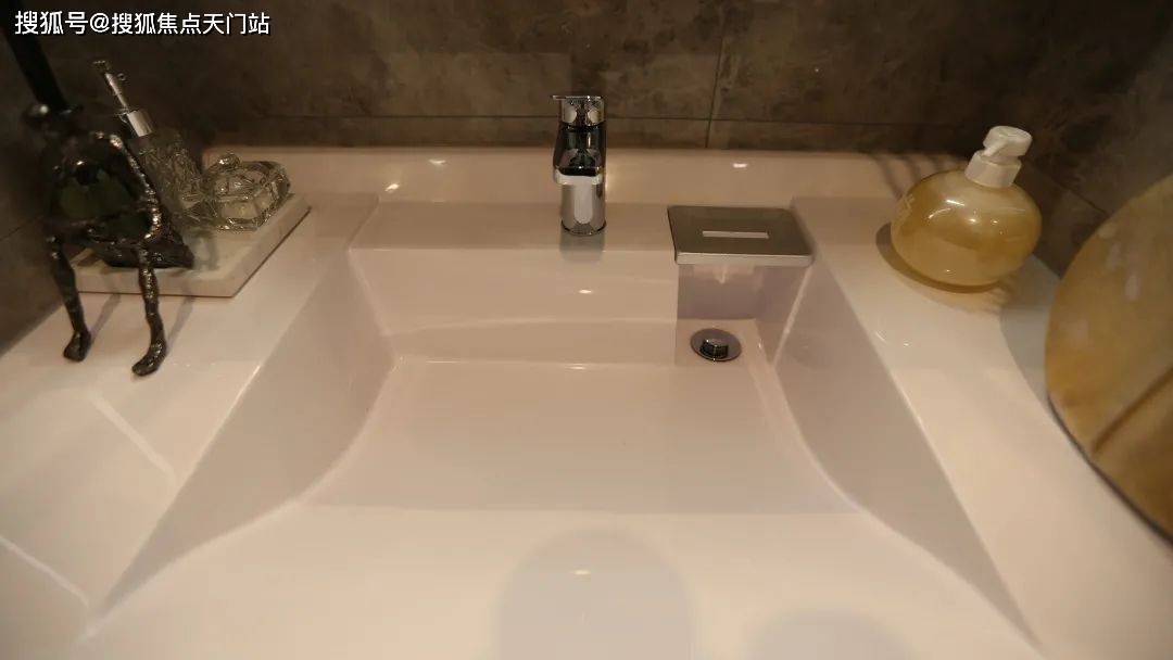 还有厨房配备了食物垃圾处理器以及凉霸,客厅配有仿大理石的电视背景墙,卫生间的台盆设有贴心的肥皂盒,就连阳台都为业主安装了洗衣机龙头和地漏。
