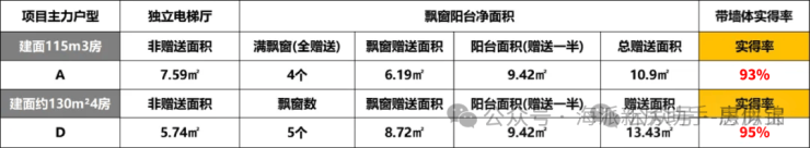 1、建面约114㎡3房,实得率约93%!常规的同面积产品,也不过约80%上下。