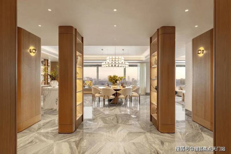 万科中興傲舍凝聚72种高端豪宅都难得一见的奢材 ,如皇家白奢石、Prada绿皮革面奢石、砖纹定制铝板等等,每一处细节都透露出精致与考究。