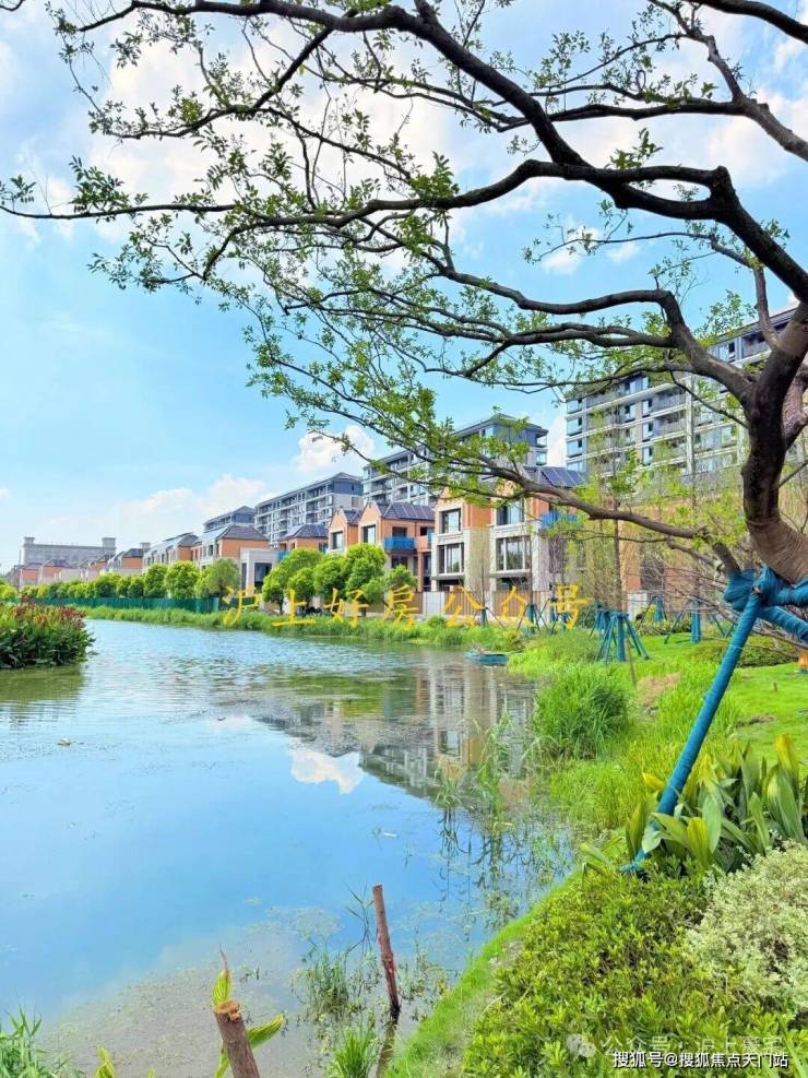 相较于保利·西郊和煦的单一水系分布,领墅项目西、北两侧拥有约1000米原生水岸+约20米宽生态河道+约270°广角河景。