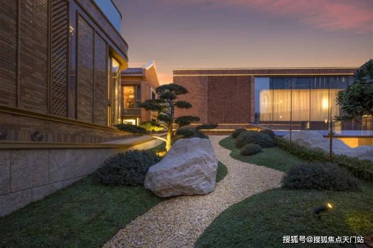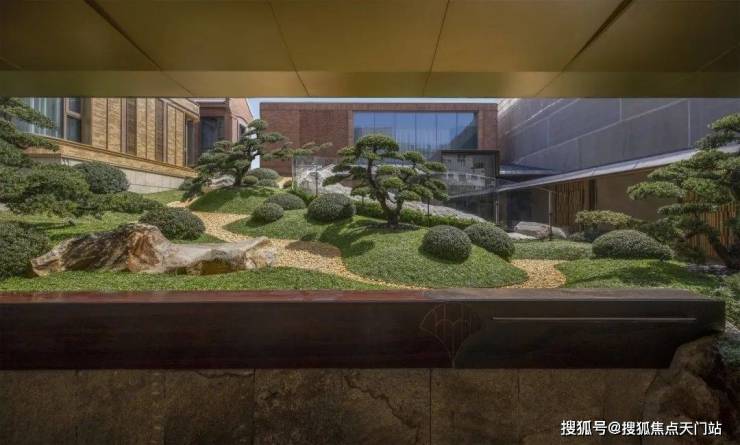 越秀外滩樾的公区庭院非常精致,其精心打造 充满禅意的山水庭院 。