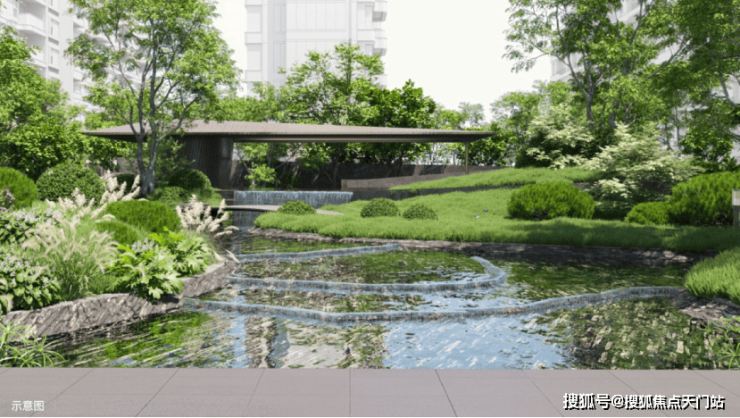 从酒店级的社区大堂入口、意境叠水水幕、四季开阔园景到自在架空天地,四重归家路线,同频上海都心改善住区的归家动线,营造归家即度假既视感。
