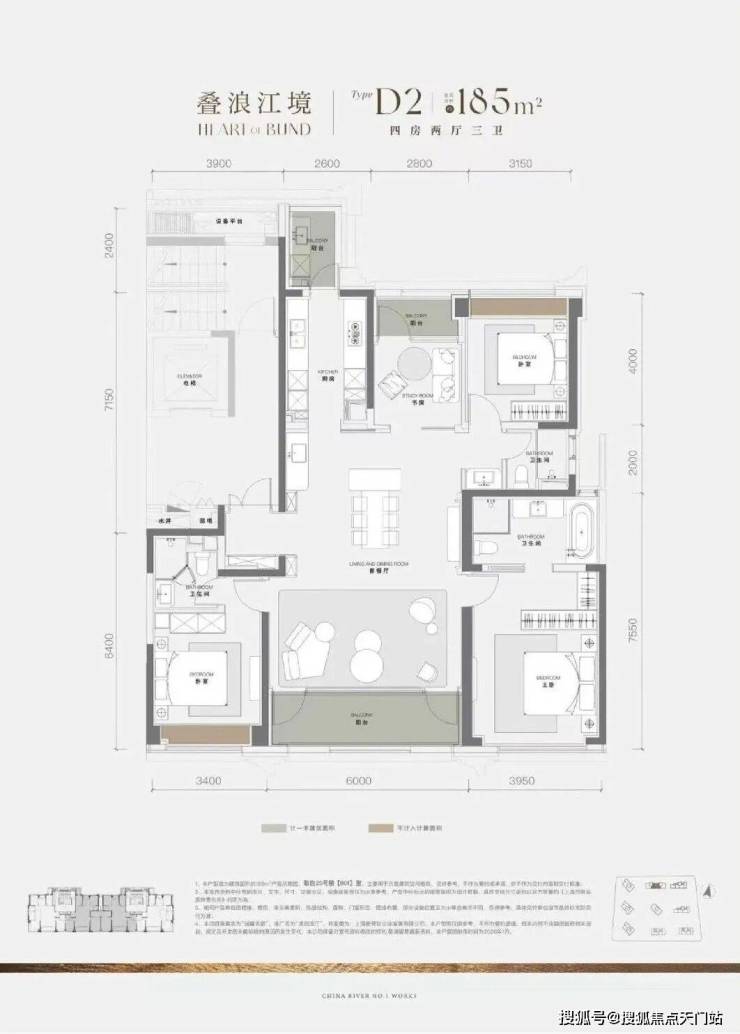 黄浦江约300M,一线滨江豪宅,华润后滩【澐启滨江】将推出约120-150-185-225-235㎡3-4房以及少量建面约380㎡顶复