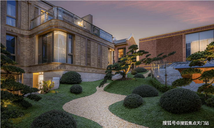 越秀外滩樾的公区庭院非常精致,其精心打造 充满禅意的山水庭院 。