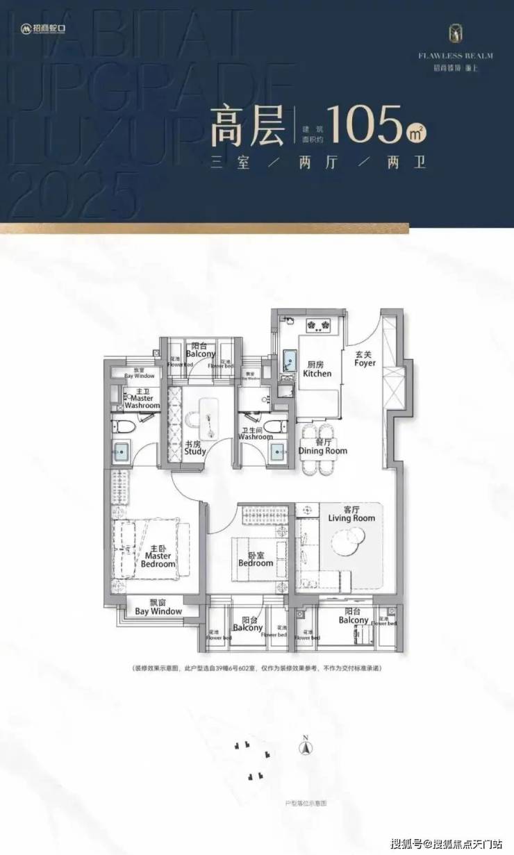 3阳台的建面约105㎡3房!