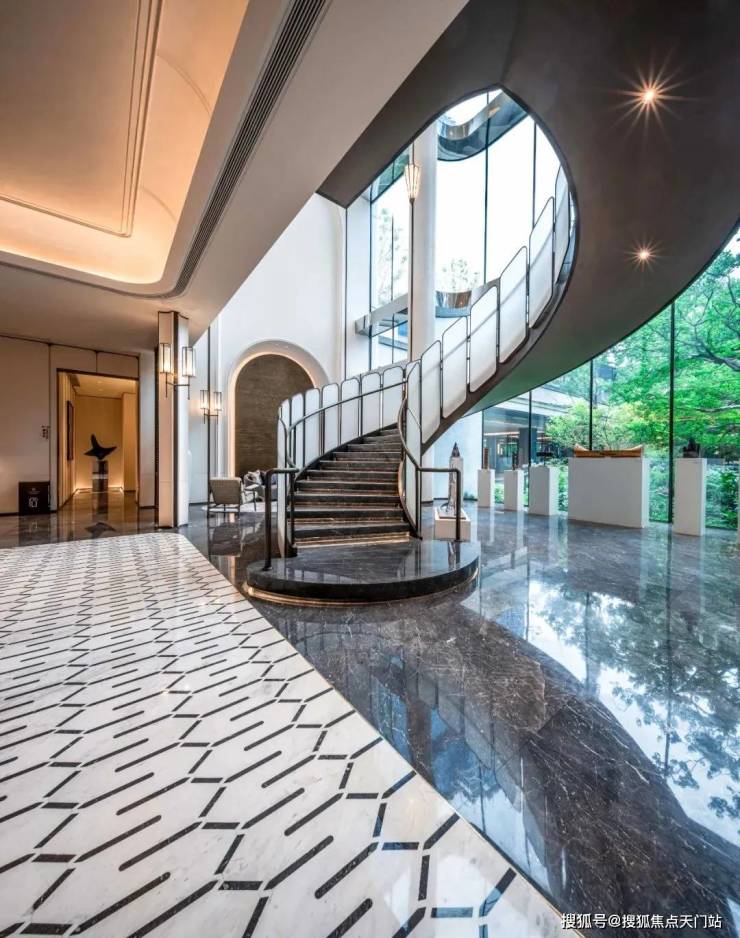 旋转楼梯属于老洋房的S曲线溯源上海老洋房曲线形楼梯形制,以海派弧形金属线条结合质感毛玻璃,勾勒出优雅姿态,静述着岁月的故事,将生活情景逐步拉回到大上海的繁华年代。