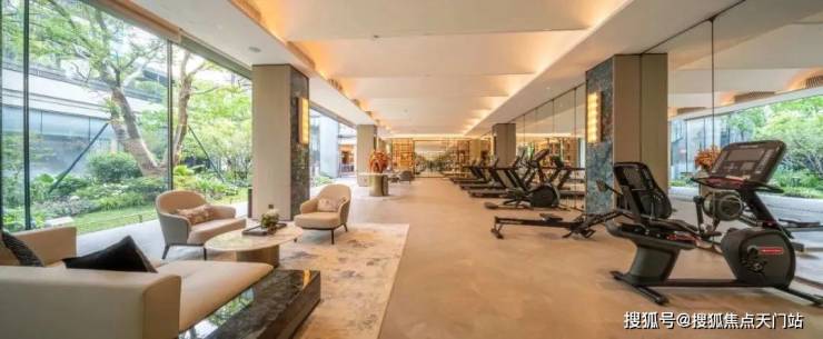 新潮观景健身天地健身空间,搭配海派砖花地砖,极尽静奢风潮。大面积落地玻璃与下沉庭院的浓荫深度交融,或瑜伽、或健身,让心灵的在酣畅淋漓中重回宁静与自在。