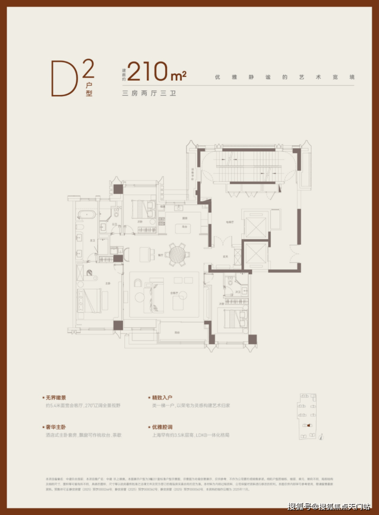 【3#210㎡户型】——南向俯瞰下沉式庭院,北侧私藏浮光池院。