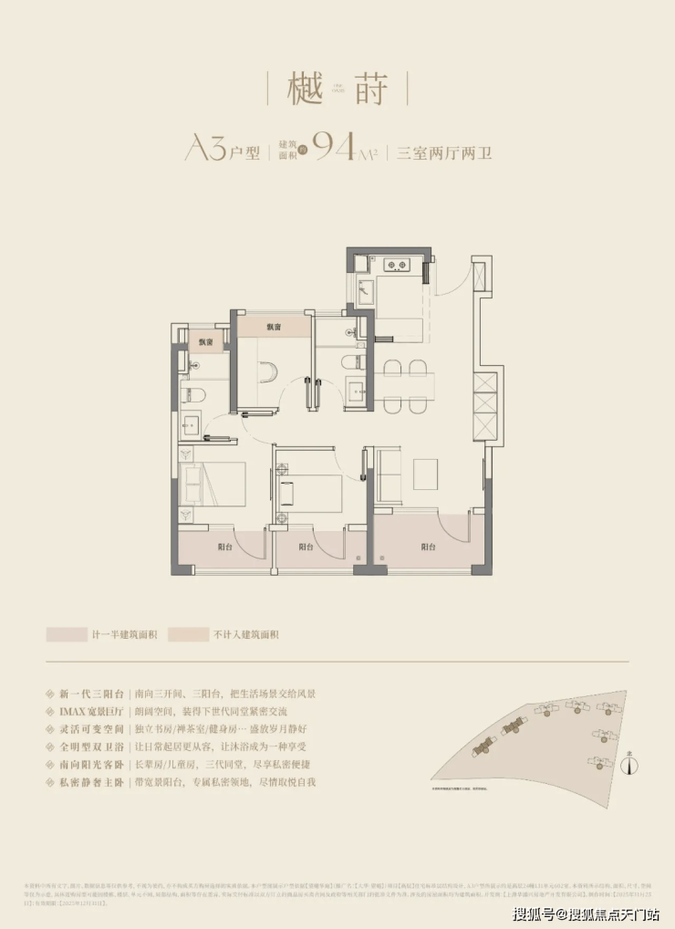 高实得率:多阳台+全景飘窗设计,部分户型实得面积较市场同面积段产品增加约10%。
