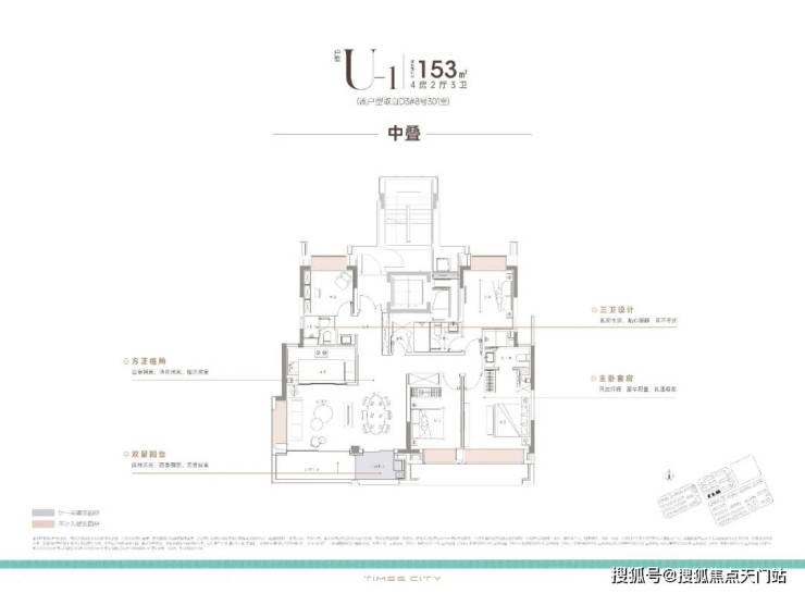 项目的中叠 四开间朝南,超大IMAX的采光面,妥妥市区豪宅大平层的尺度感。