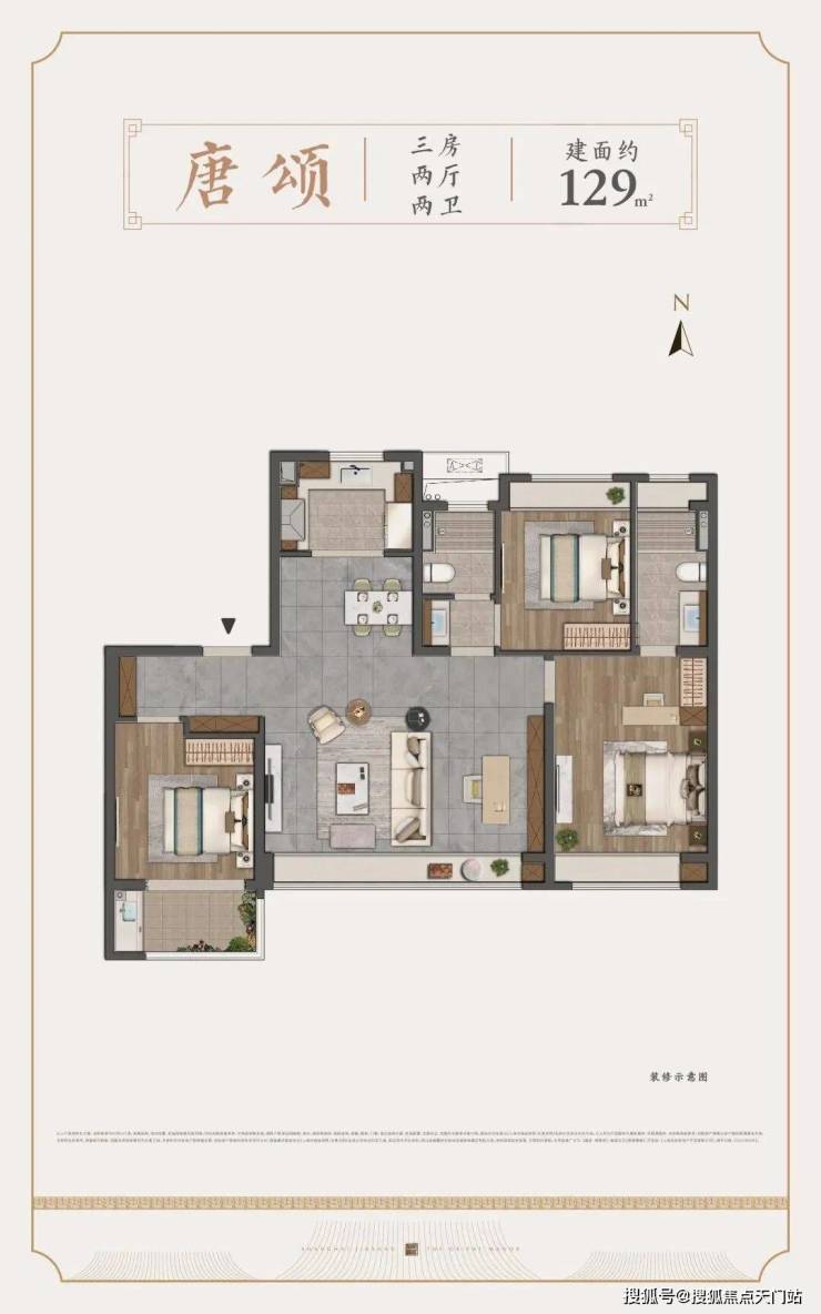 约129㎡做到了市面少有的四开间朝南,配以南向大横厅客厅,社交空间的尺度感在同级中是“奢侈的”。