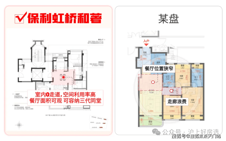 先说户型:如果你熟悉上海市场,你会发现目前市面上的户型普遍会面临:利用率低、收纳空间少、有连廊、卫生间少/功能性差、卧室太小不够等问题。 但保利虹桥和著的建面约104㎡3房2卫,却很好的解决了以上所有问题: