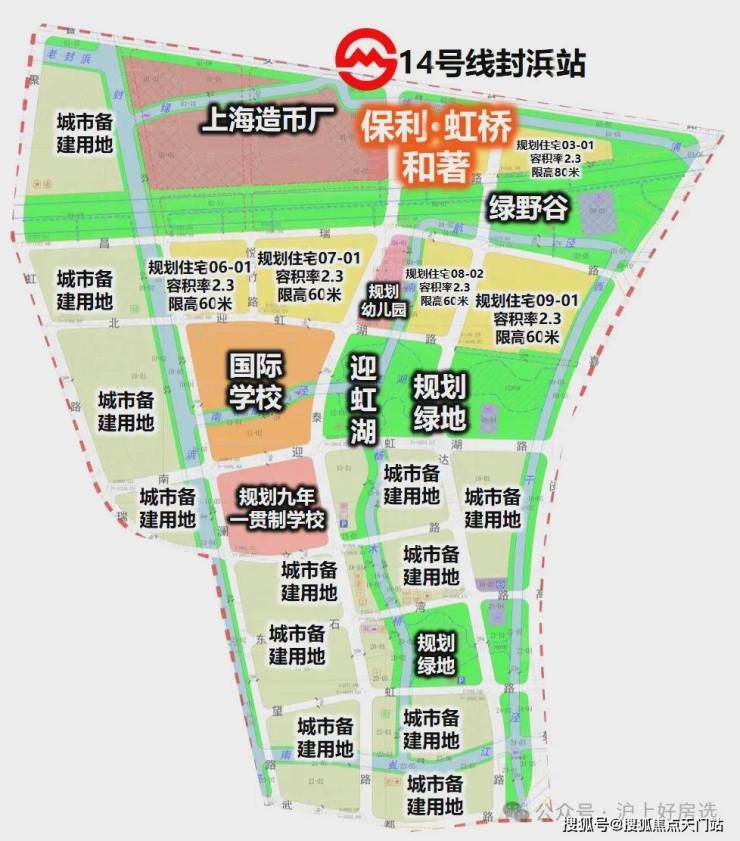 轨交:地块与地铁14号线终点站封浜站的直线距离不到500米,坐一站到乐秀路,未来可以换乘嘉闵线(在建),连接大虹桥、七宝、春申等板块。