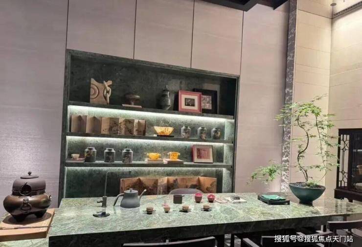 示范区大量运用数十种原石打造,例如社区入口处揉石成缎的葡萄牙沙漠风哑光面石墙,采用了十几道复杂工序,水刀雕刻、高精抛光仅是前奏,喷砂、浮雕与镶嵌等高难技艺亦是中段,最终展现完美的光泽与细腻触感,形状上还原风的褶皱,展现独家的质感和归家仪式感。