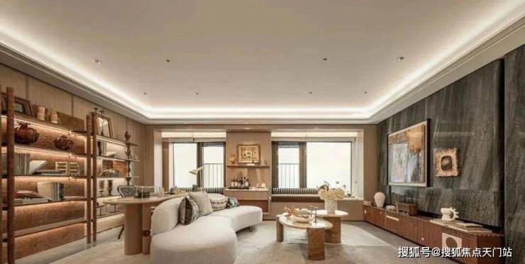 目前样板间做的是开放式书房,这让整个客厅空间大大增加。