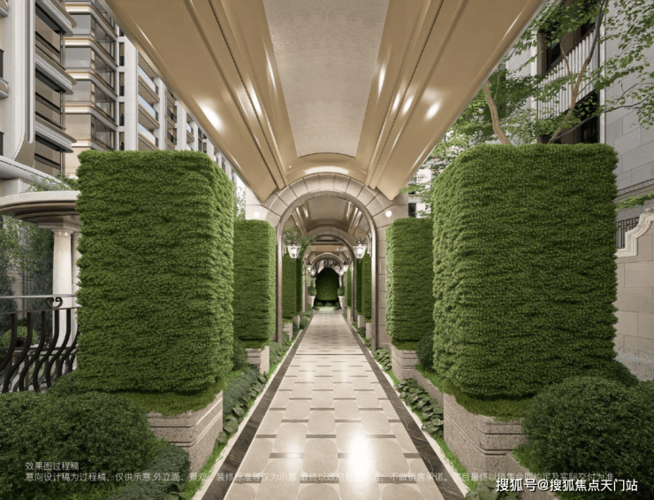 园林上,以“一庭一廊、两巷三园、十境共生”的叙事格局,融合全球顶奢酒店花园灵感与上海在地文化肌理:入口致敬伦敦半岛酒店仪序,石狮静守彰显尊崇;中央庭院呼应华尔道夫酒店羿庭柱廊序列,营造韵律社交场景;花园布局借鉴巴黎丽兹酒店对称庄园格式,秩序中藏诗意;一步阳台溯源孙科别墅优雅意境,续写海派从容。更点缀罗斯柴尔德别墅景观亭、武康路公馆铁艺雕花等经典元素,铺陈出一幅可漫步、可沉浸的世界性园林画卷。