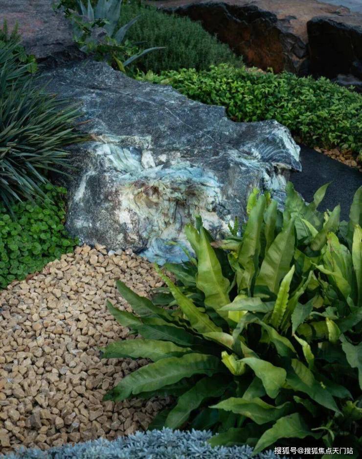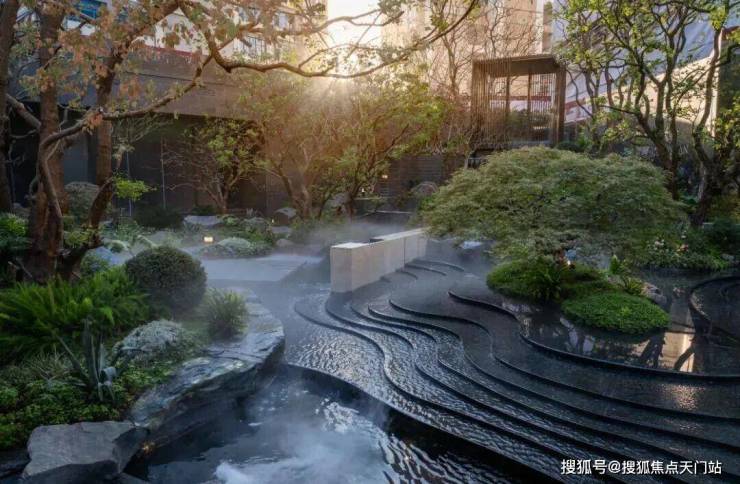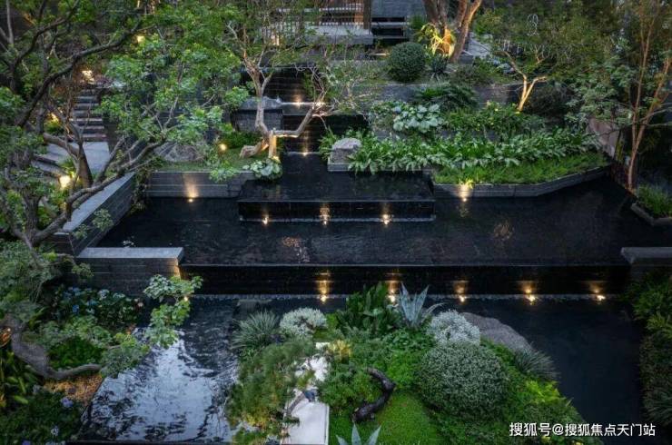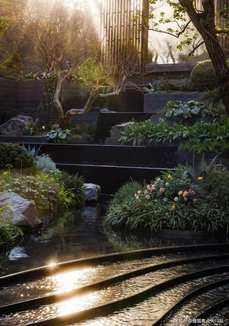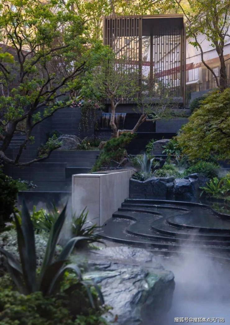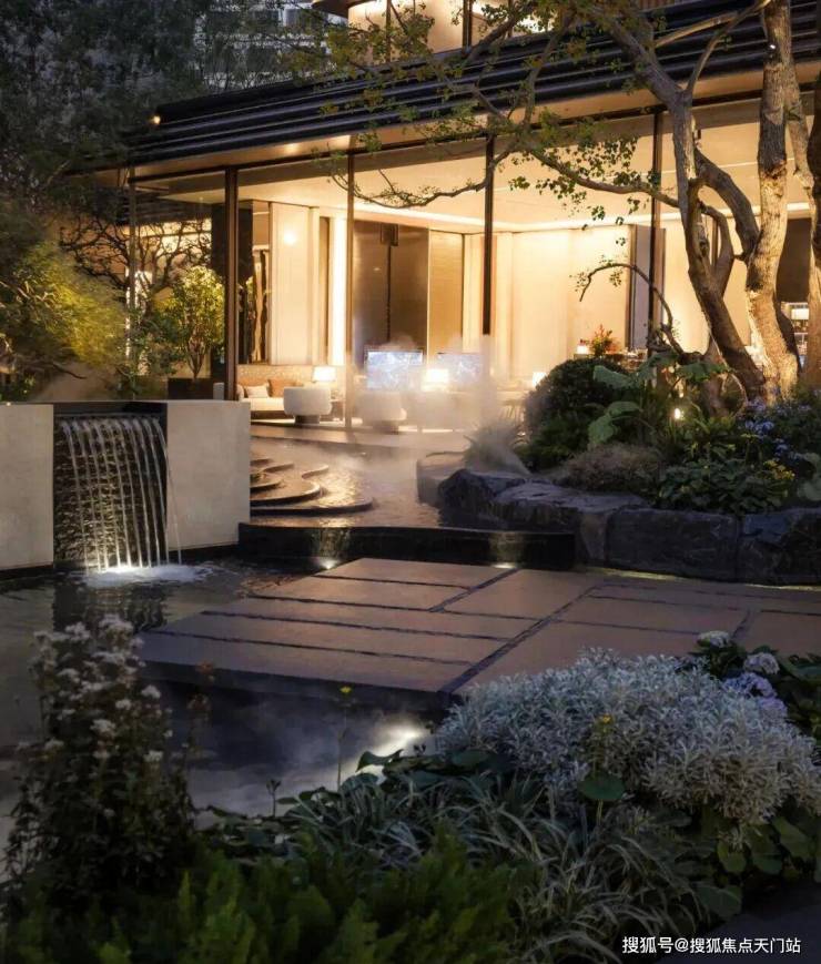 同时百年冬青撑开7.5米的华盖,186块乌金原石从太行山平移至此,银河流金奢石铺就的星河在水盘池底闪烁,仿佛将整片银河都收纳其中。