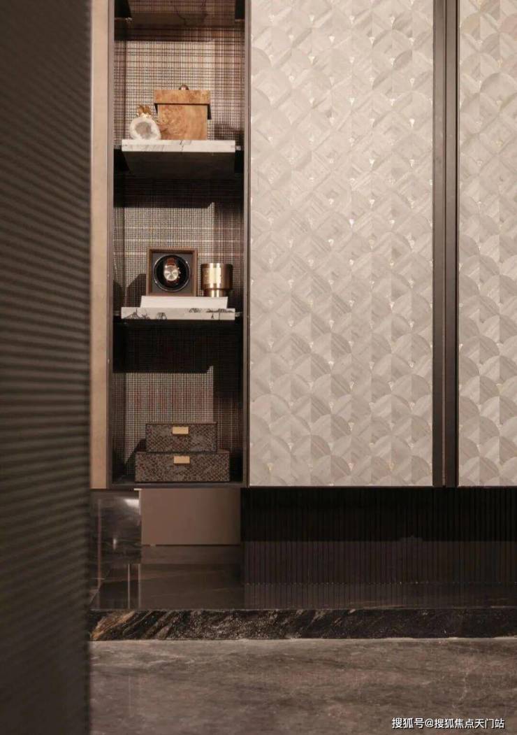 木纹墙纸与银箔贴面巧妙搭配,烟雨江南大理石铺就水墨意蕴