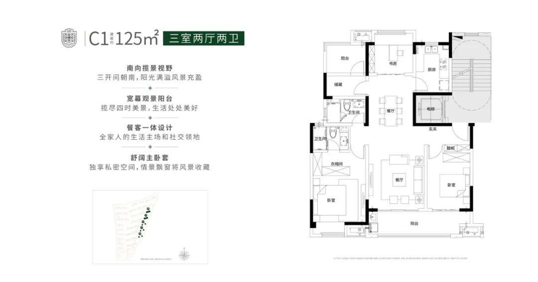 建面约90-125㎡成长型家庭优选户型,多开间南向大面宽,将阳光与绿意纳入生活。