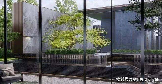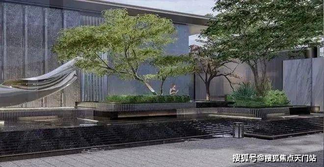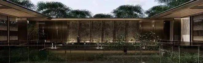 第五重:下沉庭院打造一体式景观,墙面流水至地面,结合水中花池营造出纯粹的自然之境。
