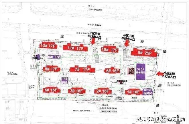 其中1号楼靠近17层的保障房,5号口为3层的配套用房;14#、15#为P站,16#为垃圾用房。