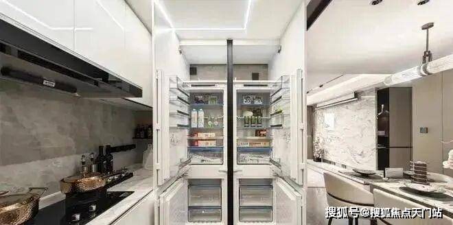 厨房空间,甄选西门子新款的抽油烟机、灶具、洗碗机等,甚至连大部分项目不配备的冰箱也是交付标准;还特别配置了轨道插座、前端净水器和凉霸;吊轨金属玻璃移门,既美观又方便清理。