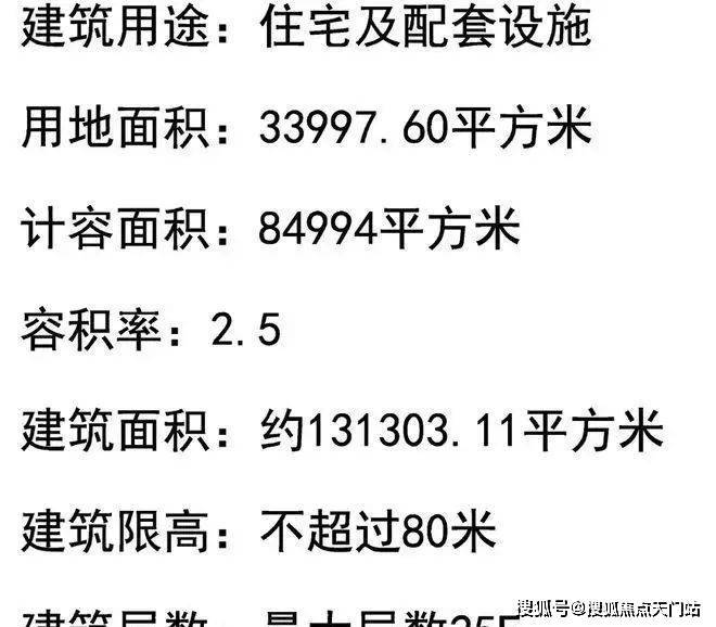 地块用地性质为普通商品房,容积率约2.5,限高80米,住宅套数下限867套,需配建5%以上保障性住房,中小套户型不得低于70%, 全装修比例100%!