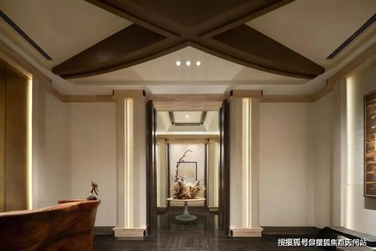 复刻马勒别墅的海派席纹砖石拼花,雕琢顶豪别墅的气场。天地之门拱券图案、精致刻槽建筑腰线、邬达克式经典微弧,勾勒风貌别墅的新精致主义格调。