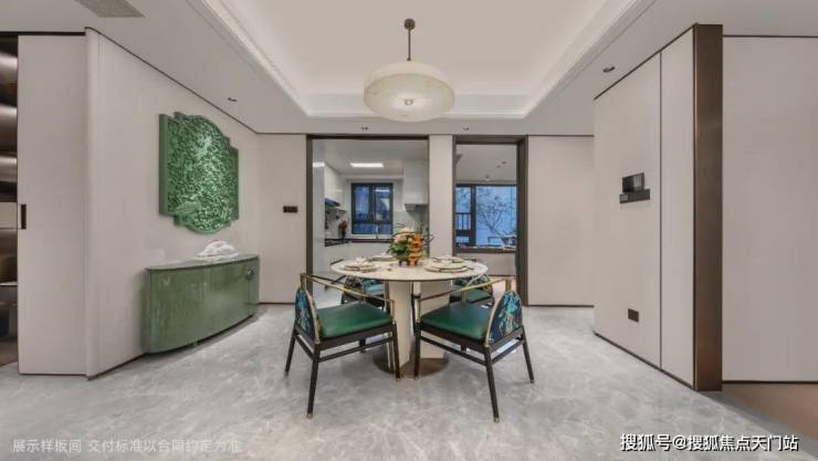 宽阔餐厅空间,可放置圆形餐桌,同时,预留餐边柜空间,满足更多收纳储物的需求,让质感与实用性兼具。