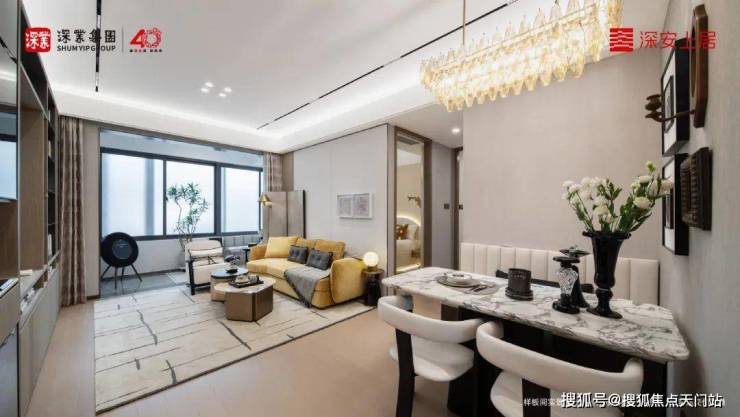 深业·深安上居规划有12幢现代美学风格的建筑,玻璃幕墙搭配米白色和深灰色材质涂装,简约线条分割完善挺拔向上的平面美学。