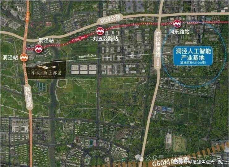 交通方面:项目距离12号线西延伸沪松公路直线距离约1km。目前12号线西延伸正在加速推进,预计2027年底开通试运营。12号线西延伸在松江境内从G60云廊沿沈砖公路,东西向穿过洞泾,设沪松公路和刘五公路设站,在洞泾站与9号线交汇。