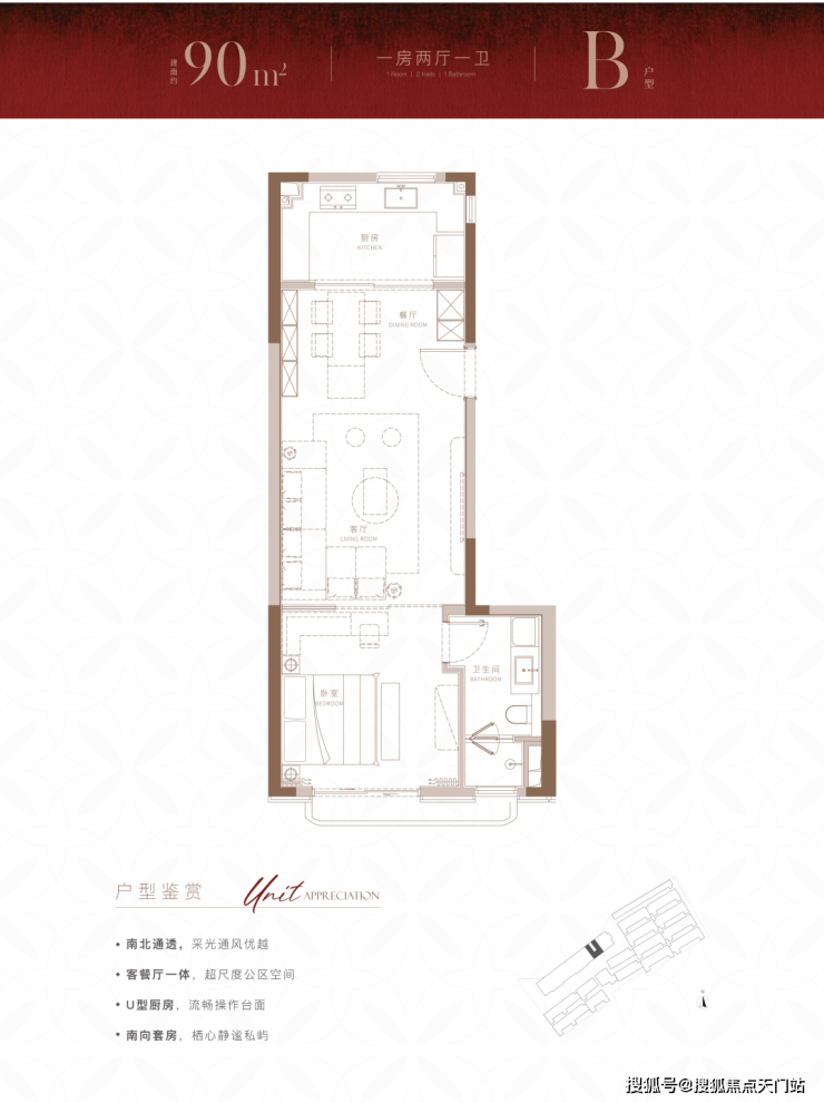 经典的南北通透房型,卧室客厅采光皆丰沛,一体化客餐厅带来的不仅是最便捷的烹饪动线,也为家庭成员之间!