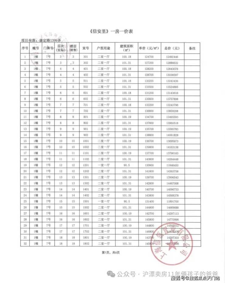 别墅一房一价表: