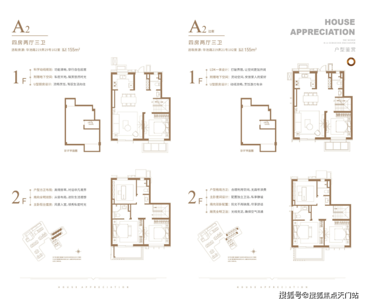上叠户型,共有三个主力户型,建面约155㎡、151㎡