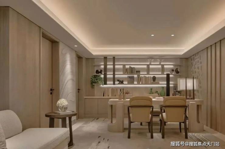 夹层被安置成了书房,安静、雅致,为了显露对生活的慰藉,像是把精神世界现实化的地方,展现修养、审美甚至家风。也如三毛在《送你一匹马》中所说:“许多时候,自己可能以为许多看过的书籍都成过眼烟云,不复记忆,其实他们仍是潜在的。”