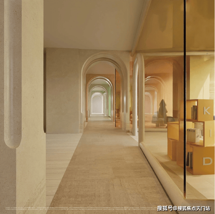 从九龙路起步,在繁花水岸的滨水步道上漫步归家;归家之路在滨水艺境另一侧,是 约7000㎡的沉浸式邻里风貌街区,融合党群服务与邻里综合体业态,可在归家路途中感受精致烟火气;之后抵达九龙路归家主入口的河岸艺术大堂,两条地上细分动线,藏着不同的归家意趣:一条从主入口艺术大堂步入,沿着风雨连廊穿越花园小径,光影透过叶片洒落脚边,风携花香漫过肩头,仿佛逛完一场印象艺术展;另一条则经 风雨连廊直抵“艺术品展列空间”泛会所,或许邂逅正在展出的私人藏品,在艺术氛围中完成圈层身份的过渡。最后步入电梯厅,半圆弧形天花吊顶暗合“天圆地方” 东方哲学,让归家终拾恢弘而宁静的仪式感。