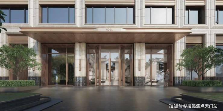 项目还有一个超大亮点,就是东侧的主大门。不同于普通项目的门头设计,项目四进式的设计,从「玖系」非常经典的隐奢门头入场,再到公馆草坪的仪式感,再到社交聚场的打造,层层递进。